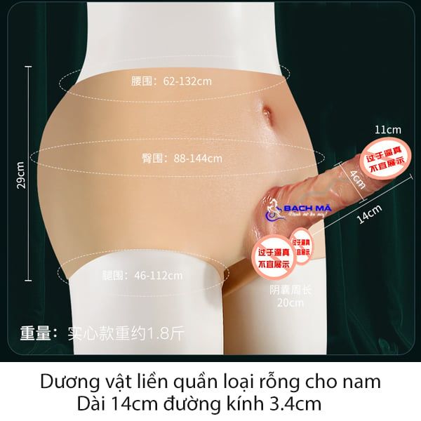 Quần dương vật giả dành cho les làm bằng cất liệu silicon cao cấp, với độ co giản cực tốt, mang lại cảm giác chân thực và thoải mái tối đa. Sản phẩm có chiều dài dương vật 14cm, đường kính 4cm, được thiết kế phù hợp để tạo cảm giác tự nhiên, phù hợp với nhiều nhu cầu sử dụng. Vòng eo rộng 132cm, vòng mông 144cm và vòng chân 122cm giúp quần ôm sát, vững chắc, hỗ trợ tối đa trong các hoạt động thỏa mãn cảm xúc. Chất liệu silicon cao cấp mềm mại, không gây kích ứng, dễ vệ sinh, độ bền cao, giúp người dùng tự tin, thoải mái khi sử dụng. Đây là sản phẩm hoàn hảo để tăng cảm giác tự nhiên, tự tin thể hiện phong cách riêng, phù hợp cho các bạn muốn thay đổi diện mạo, khai thác thử thách mới trong chuyện yêu.