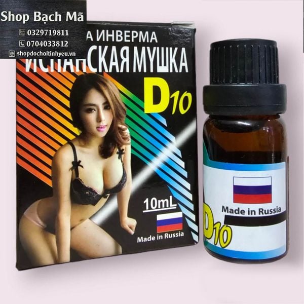 Thuốc kích dục nữ D10 của Nga cực mạnh với các thành phần tự nhiên và an toàn là giải pháp hiệu quả để tăng cường ham muốn và khoái cảm tình dục ở phụ nữ. Sản phẩm mang lại hiệu quả nhanh chóng, giúp bạn và đối tác tận hưởng những khoảnh khắc thăng hoa và hạnh phúc. Hãy để D10 của Nga trở thành người bạn đồng hành đáng tin cậy, giúp khám phá và trải nghiệm sự thỏa mãn và viên mãn trong cuộc sống tình dục.